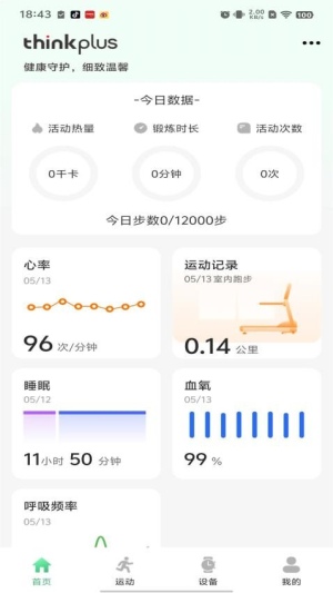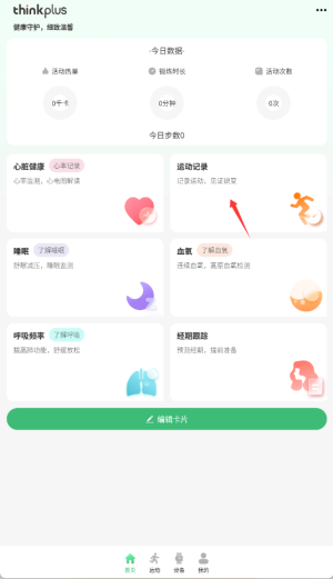 1、进入闪联智慧生活APP后,点击"运动记录"选项,进入数据记录界面。