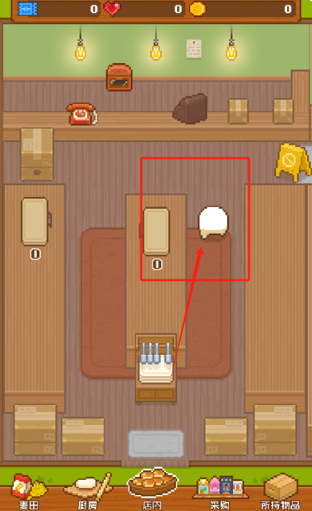 2、点厨房按钮做面包,红圈里的东西要特别注意。