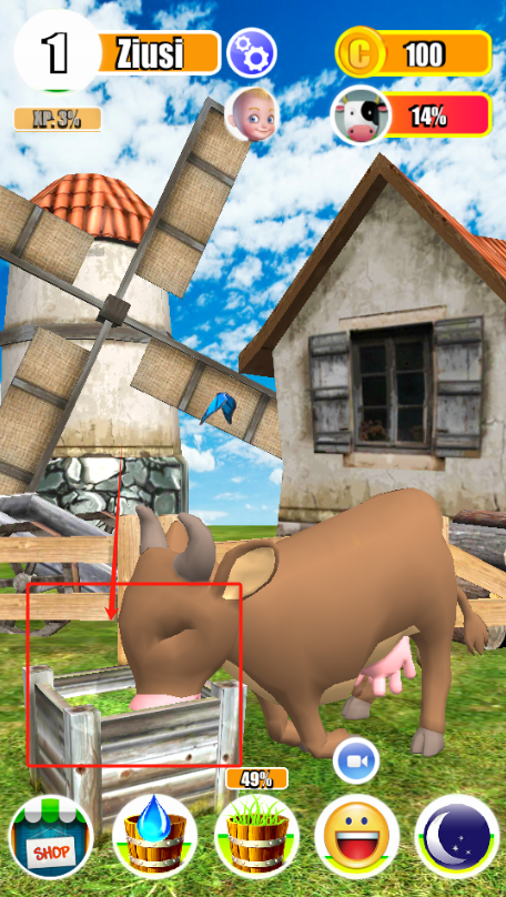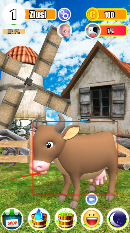 1、点红框里的棕色奶牛,它会开始吃草产奶。