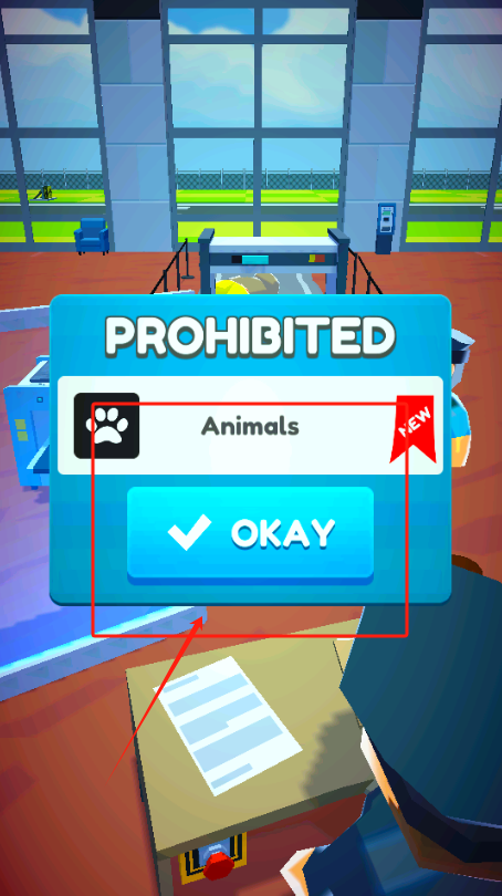 1、点OKAY按钮确认违禁品,红框提示动物不能带。