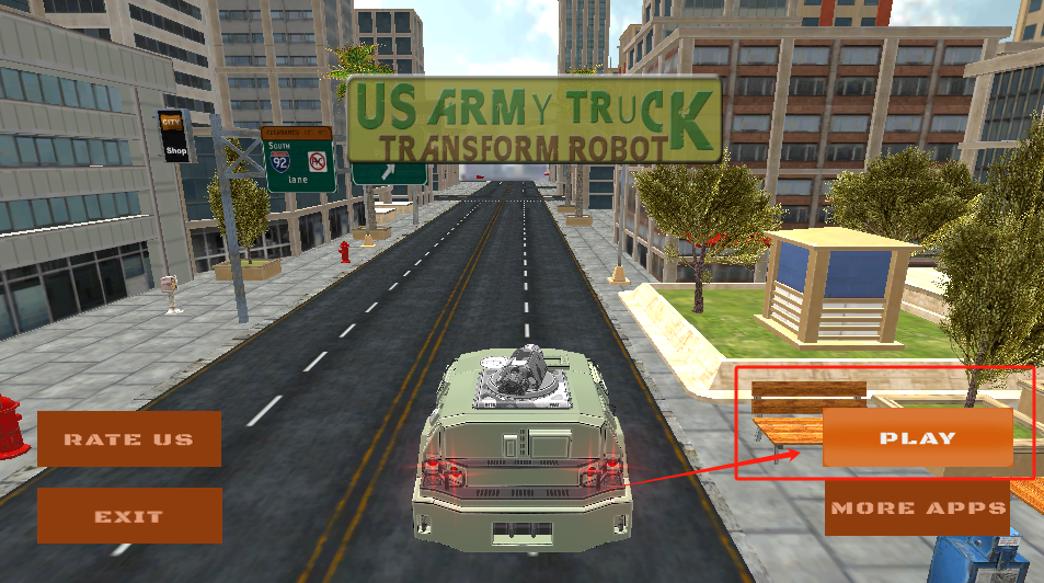 1、点绿色PLAY按钮开始游戏,红框提示这是主界面入口。