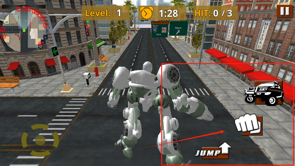 3、用底部HIT和JUMP按钮控制机器人战斗,打倒3个敌人过关。