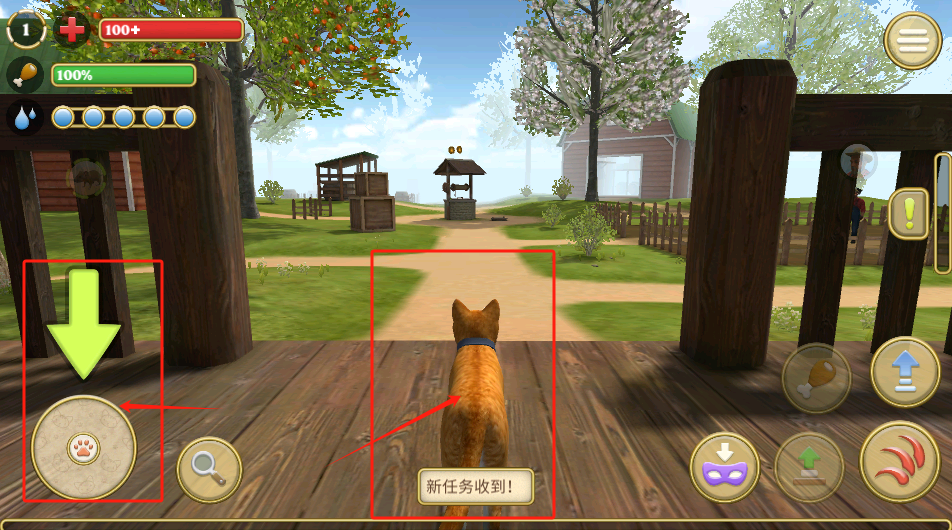 3、左下角爪印按钮接新任务,橘猫在农场可以探索新区域。