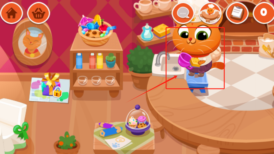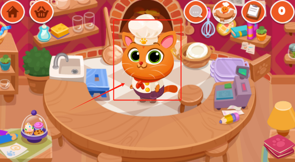 2、看橙色小猫厨师,点它面前的桌子开始做饭。