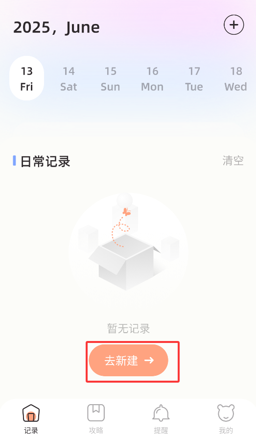 1、启动APP后点击"新建记录"按钮,即可创建养蚕日记,记录每日养殖情况。