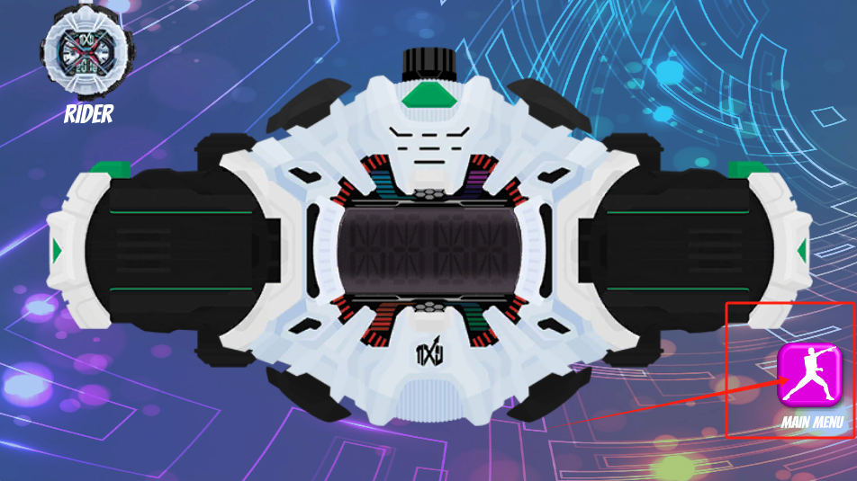 2、看左上角RIDER标志,右下角MAIN MENU可以返回主界面,中间是变身装置。