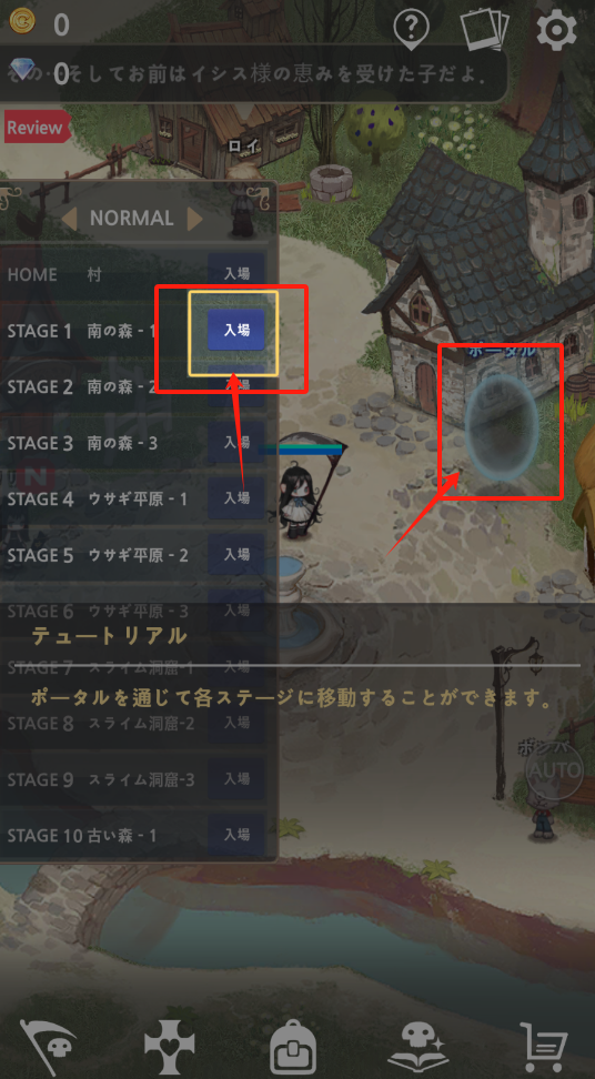 2、左边选关卡,点入场进副本,右边蓝色传送门是回村子的快捷通道。