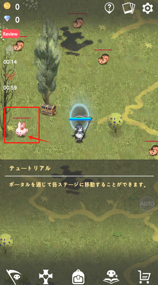 3、控制角色打兔子怪,开宝箱捡东西,左上角倒计时结束就能过关。
