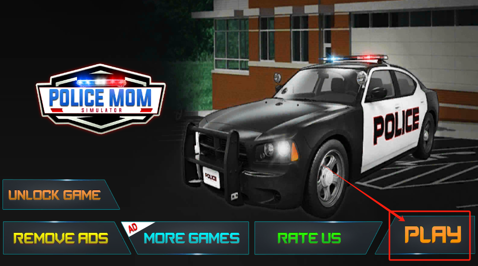 1、点击红色框里的PLAY按钮,开始玩警察妈妈模拟器游戏。
