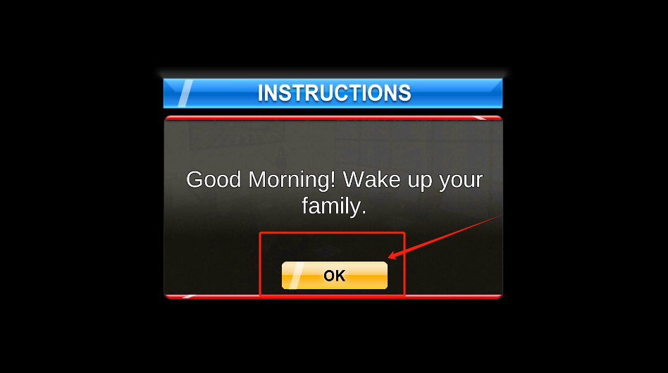 2、阅读完早安提示后,点击黄色OK按钮继续游戏。