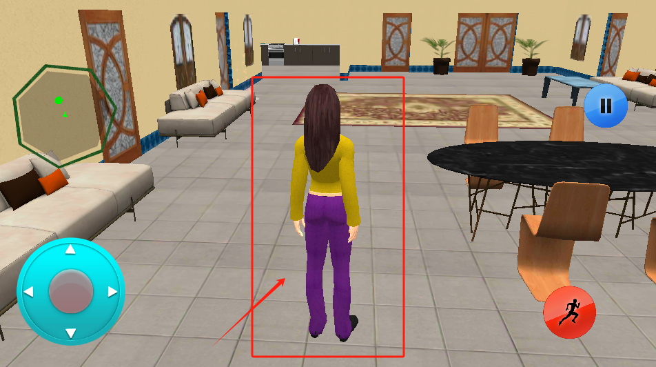 3、控制角色在客厅活动,点击红框里的长发人物进行互动。