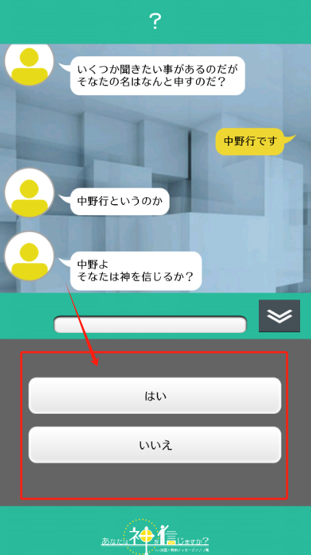 2、在是否相信神的问题中,选择选项来推进剧情发展。