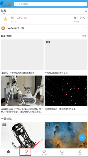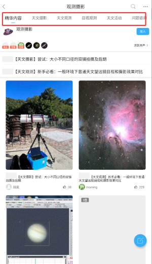 2、根据个人兴趣浏览不同主题的讨论圈,涵盖观星技巧、器材评测等专业领域内容。