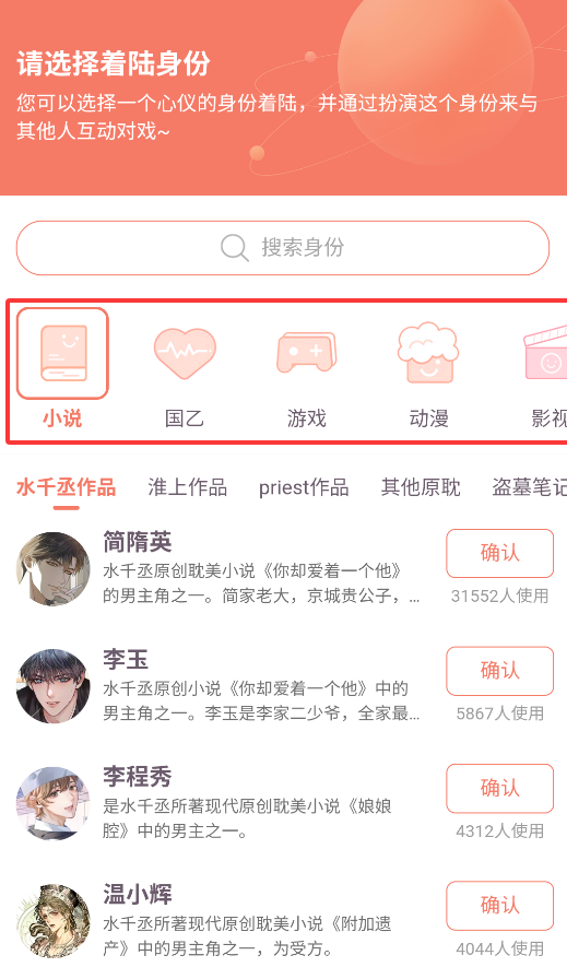 1、启动APP后,在“身份选择”界面挑选感兴趣的虚拟角色(如动漫主角/游戏英雄),查看背景故事和技能设定。