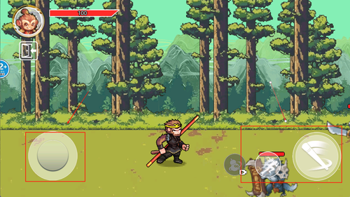 2、左侧是移动控制区域,右侧是攻击与跳跃按钮,界面下方显示当前血量与技能冷却状态。