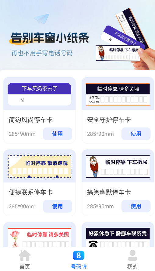 2、在"个性车牌"功能中,可自定义电子停车牌样式(含动漫、极简等主题),生成专属二维码方便他人扫码联系挪车。