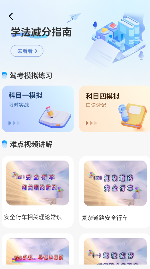 3、学法减分全流程。从视频学习到模拟考试一站式服务,考试通过率较传统方式提升40%。