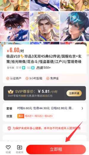 2、租赁前仔细查看账号详情和租用规则,特别注意设备限制要求。大额订单建议购买"安心租"保障服务。
