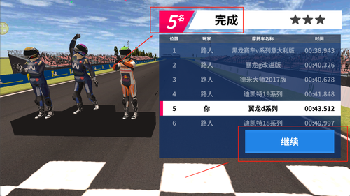 3、达成每一关的目标即可通关,例如第一个冲过终点或完成指定数量的特技动作,不同关卡有不同的胜利条件需要注意。