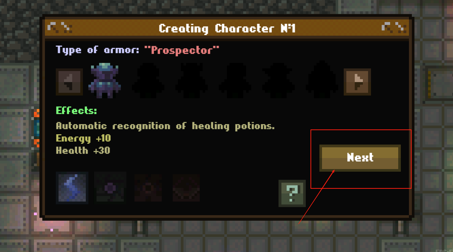 3、点右下角红框的Next按钮,确认创建探矿者角色。