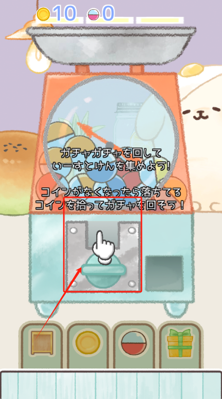 1、点机器把手花金币抓娃娃,没币时捡掉落金币继续玩。