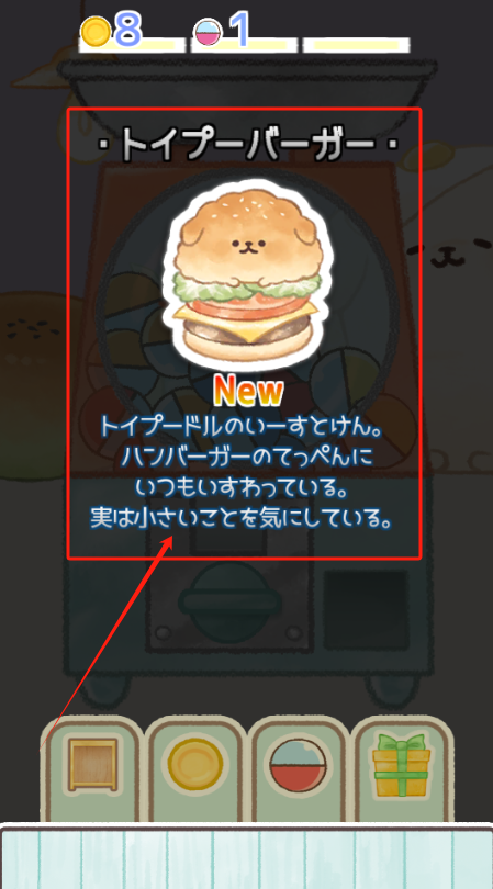2、汉堡玩具要8金币买,点下方按钮可以购买新道具。