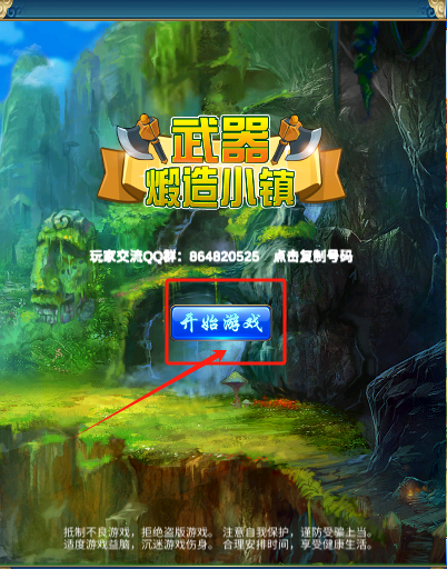 1、点红框里的开始游戏按钮进入游戏,QQ群号可以复制。