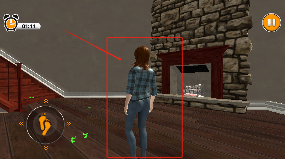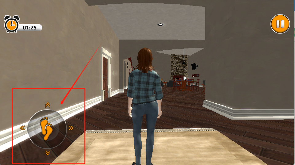 3、左下角脚印控制走路,绿箭头指方向,上面显示时间,右上角能暂停。