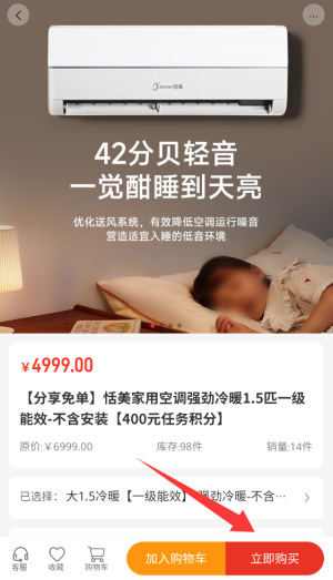 3、点击右下角"立即购买"按钮,即可跳转至订单页面完成支付流程。