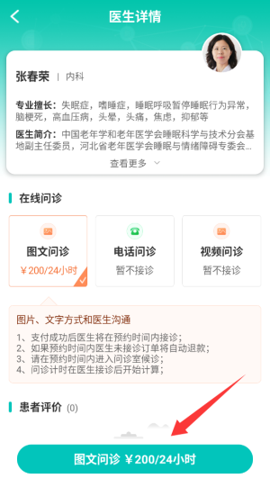 3、查看医师详细资料后,点击右下角"图文问诊"即可开始在线健康咨询服务。