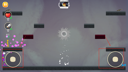 2、左侧控制区域用于角色移动与闪避,右侧则是攻击、跳跃及技能按钮,合理搭配使用才能提高通关效率。