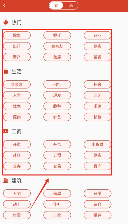 2、在软件里能查询办事的吉日,看看哪天适合办什么事很方便。