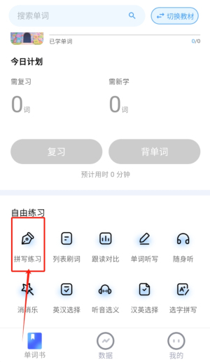 3、在词汇中心选择拼写联系挑战入口,即可参与情景化单词拼写闯关,该模块设置8类主题场景。