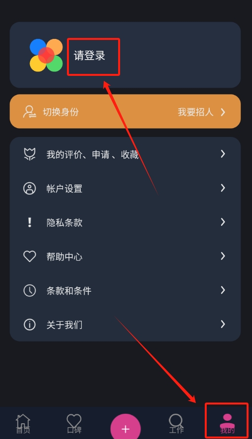 1、打开软件后,先到 “我的” 页面点击登录按钮,准备进行账号登录操作。