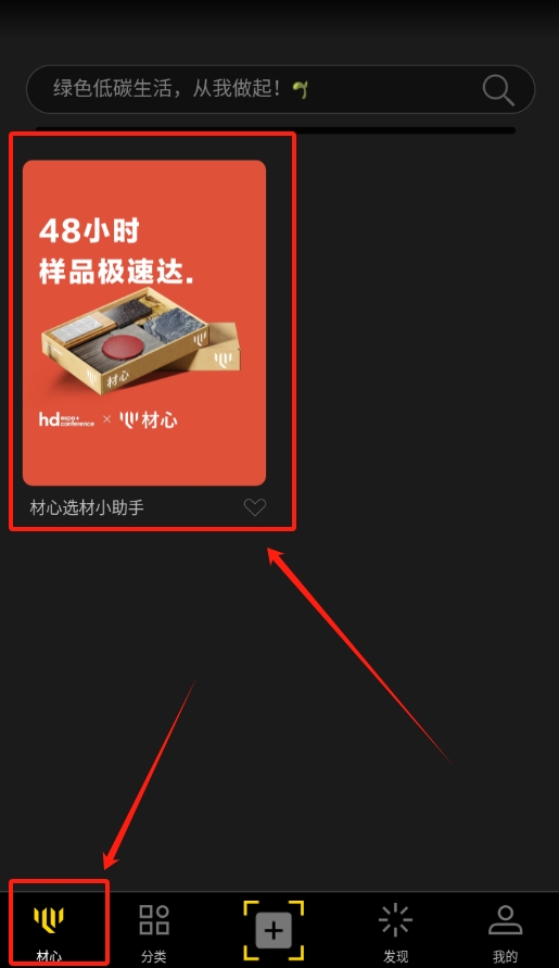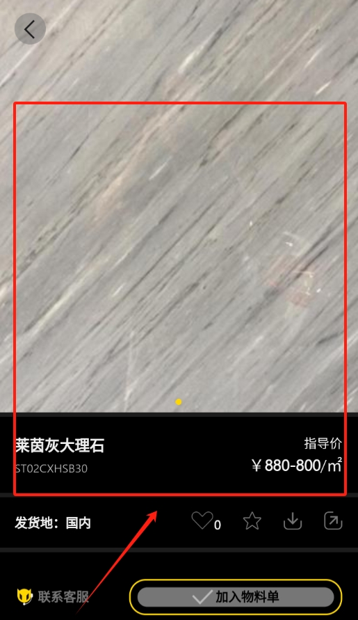 1、打开材心装修材料,在首页一眼就能看到各种物料,挑一个感兴趣的直接点进去查看。