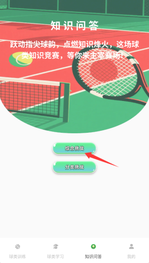 2、选择"综合挑战"模式,进入涵盖各类体育知识的答题环节。