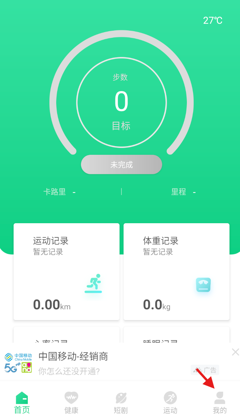 1、开启 FereFit,在界面下方导航栏找到 “我的” 选项并轻点进入。