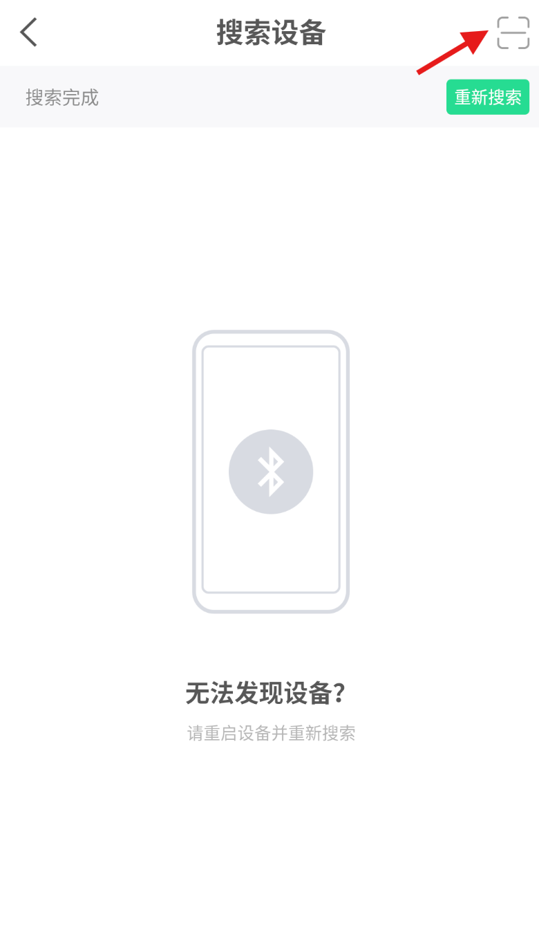 3、进入设备管理界面,点击右上角醒目的扫码图标,调出扫描功能。