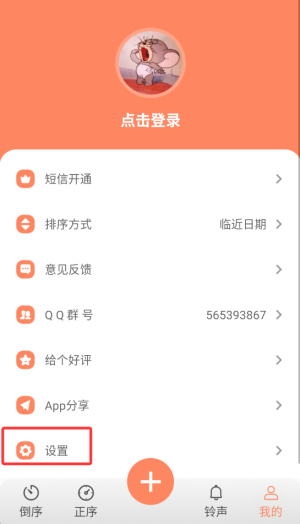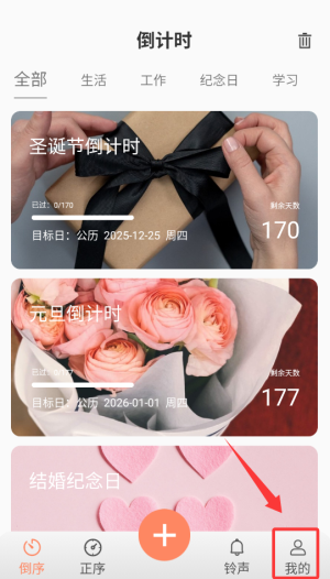 1、启动倒数日精灵APP后,点击底部导航栏中的"我的"选项,进入个人中心页面。