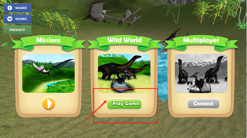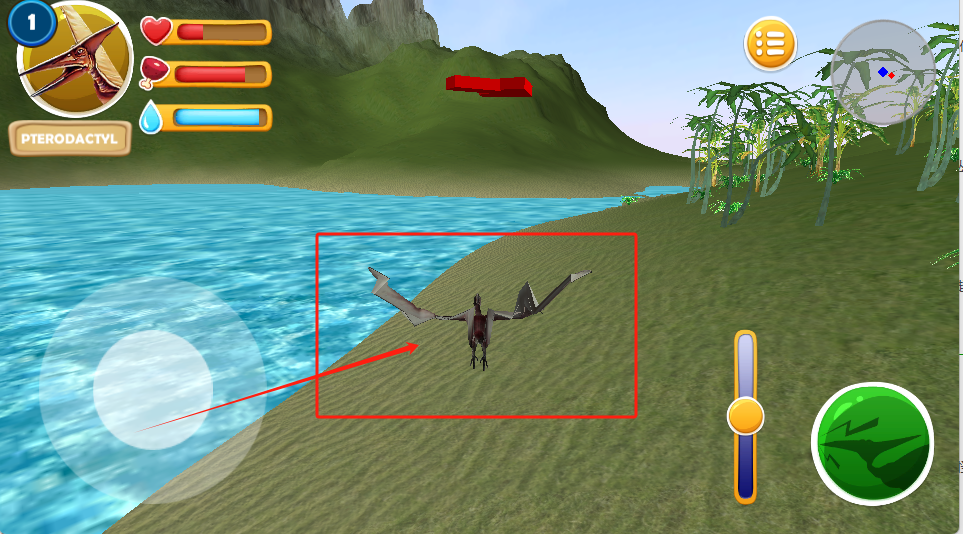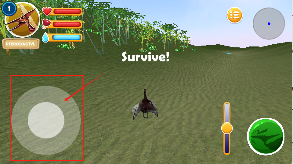 2、用红圈摇杆控制翼龙移动,注意上方生命值和饥饿条。