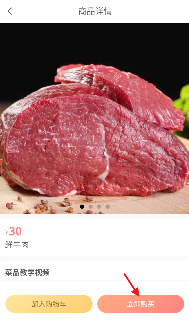 4、在鲜牛肉详情页面的右下方,找到 “立即购买” 按钮并点击,即可完成新鲜牛肉的购买操作。