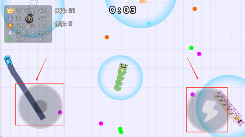 4、蛇身长度决定攻击方式,当达到一定长度后可通过环绕限制对手行动空间,创造有利进攻机会。