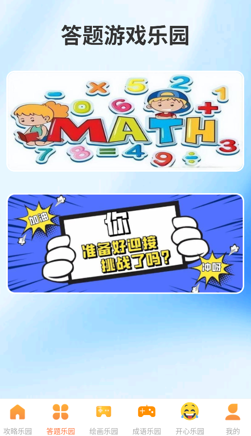 2、进入"答题乐园"专区,这里有丰富的知识竞猜和趣味问答游戏。