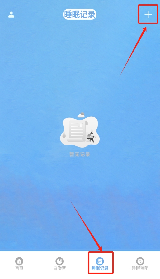 3、在睡眠记录页面,点击右上角的加号,按照提示填写入睡和醒来的时间,就能记录当天的睡眠情况,方便查看睡眠时长。