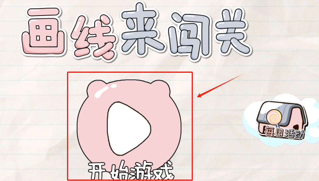 1、看到粉色播放键和开始游戏字样,用手指点那个粉色按钮,就能进入画线闯关游戏啦。