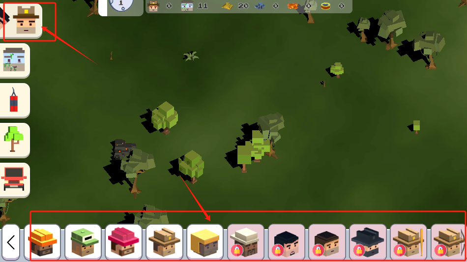 2、看屏幕上方时间和资源数,左上角头像是你,下方带锁头像需解锁才能用。