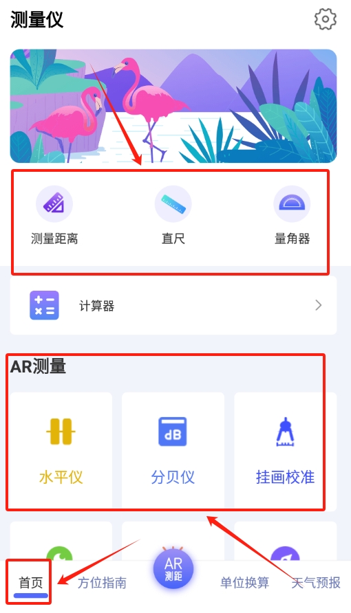 2、进入软件后,首页上陈列着各种测量工具,每个工具都有清晰标识,想测什么直接找对应的工具就行,一目了然很方便。