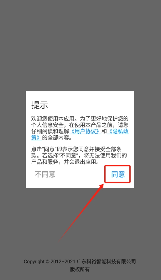 2、打开软件后会弹出软件协议,仔细看看内容没什么问题,点击同意按钮,这样就能继续下一步,进入到登录页面了。
