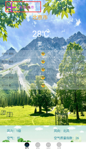 2、在首页左上角点击"+"图标,展开城市管理功能选项。