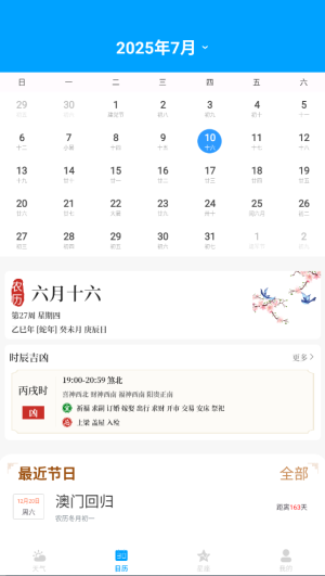 3、点击"日历"功能可查看特定日期的历史天气记录和未来预报对比。